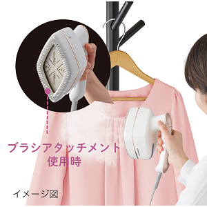 軽量タイプで専用のアタッチメント付きの合うチームアイロンです。高温と中温が選べる2段階スチームで素材に合わせて選択できます。付属のブラシアタッチメントを使うことで当て布も不要です。軽量なのでハンガーにかけたまま使用できます。